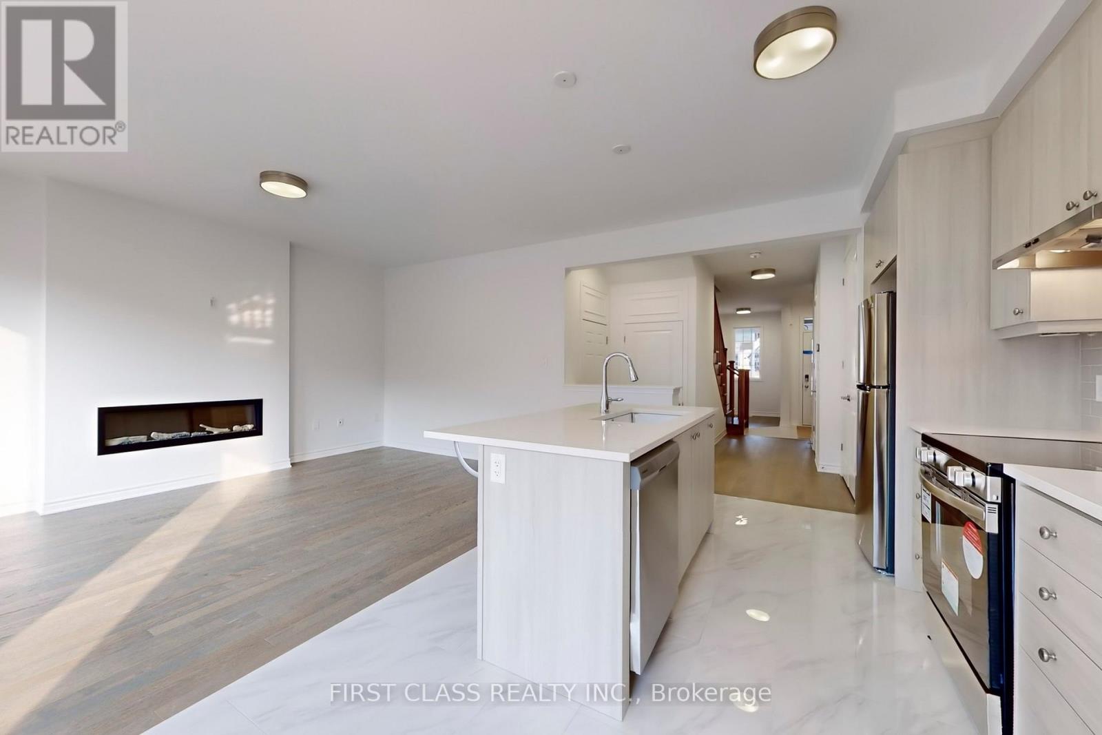 Spacious 4-Bedroom, 3-Bathroom Townhome with a Functional Layout and Modern Upgrades. Featuring hardwood flooring throughout no carpet anywhere, this home offers style and easy maintenance. The open-concept main floor combines living, dining, and kitchen areas, complete with a cozy fireplace, sleek quartz countertops, stainless steel appliances, and an upgraded kitchen with abundant storage. Large windows flood the space with natural light. A versatile first-floor den/office provides the perfect work-from-home setup. The elegant oak staircase leads to the second floor, where you’ll find hardwood throughout, walk-in closets in non-primary bedrooms, and a charming bay window nook, ideal for reading or relaxing. The primary suite features his-and-her closets and a luxurious 5-piece ensuite with a double-sink vanity, tub, and frameless glass shower. Tenant is responsible for all utilities, lawn care, and snow removal. (id:18653)