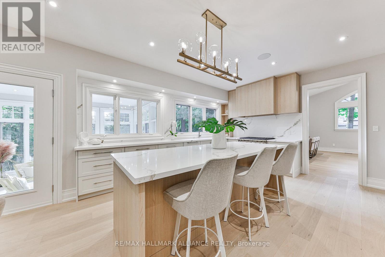 Completely renovated entire house for rent, high-end finishes and a thoughtfully reimagined floor plan, blending timeless elegance with modern functionality. Situated on a premium 75×150 south-facing rectangular premium lot, this home is just a short walk to Oakville’s top-rated schools.The exterior showcases new stucco with natural stone accents, oversized windows, and stunning curb appeal. Inside, the open-concept design features a grand living/dining room with soaring 13-ft ceilings and wood-burning fireplace, seamlessly flowing into a brand-new custom kitchen and family room. The chefs kitchen offers a massive center island, custom hardwood cabinetry, top-of-the-line appliances including a Wolf stove and Fisher & Paykel fridge, and walkout to a sun-filled cedar deck. A beautiful sunroom with full HVAC brings the outdoors in, overlooking landscaped gardens, mature trees, ponds, and stone pathways. The upper level features double primary suites with spa-inspired ensuites, heated floors, and walk-in closets, providing exceptional comfort and flexibility for families. Designer details throughout include custom millwork, accent lighting, hardware, California shutters, and premium hardwood flooring. The fully finished lower level offers a nanny/in-law suite with in-floor heating, recreation space, and plenty of storage. Recent upgrades include new spray foam insulation, new electrical panel, sump pump, tankless hot water system, pot lights, built-in speakers, and luxury designer tiles in all bathrooms. This one-of-a-kind home is the perfect blend of modern luxury, refined craftsmanship, and family-friendly living, a rare offering in one of Oakville’s most prestigious neighbourhoods. AAA tenants only, Credit Check, Deposit Required, income documents, Lease Agreement, References Required, Rental Application Required (id:18653)
