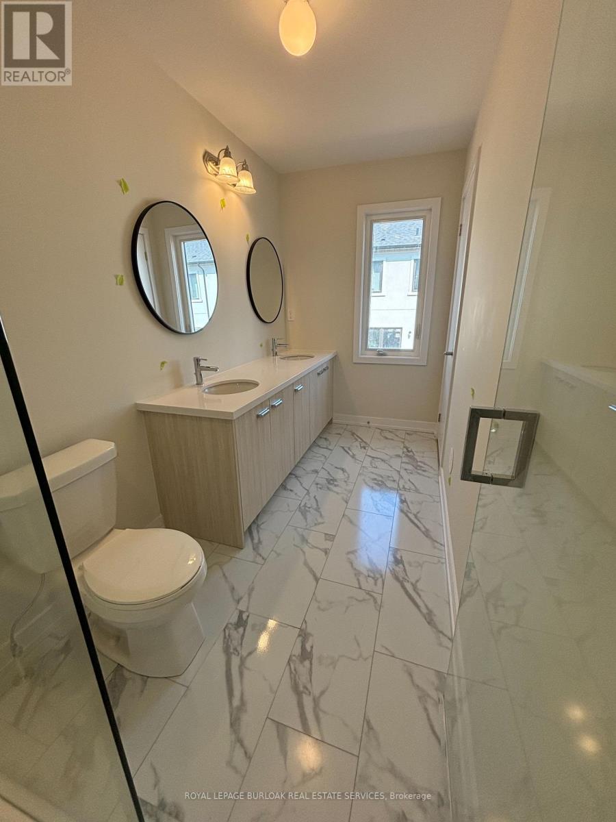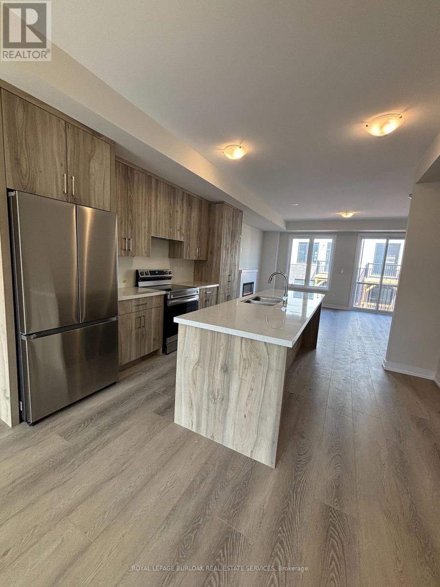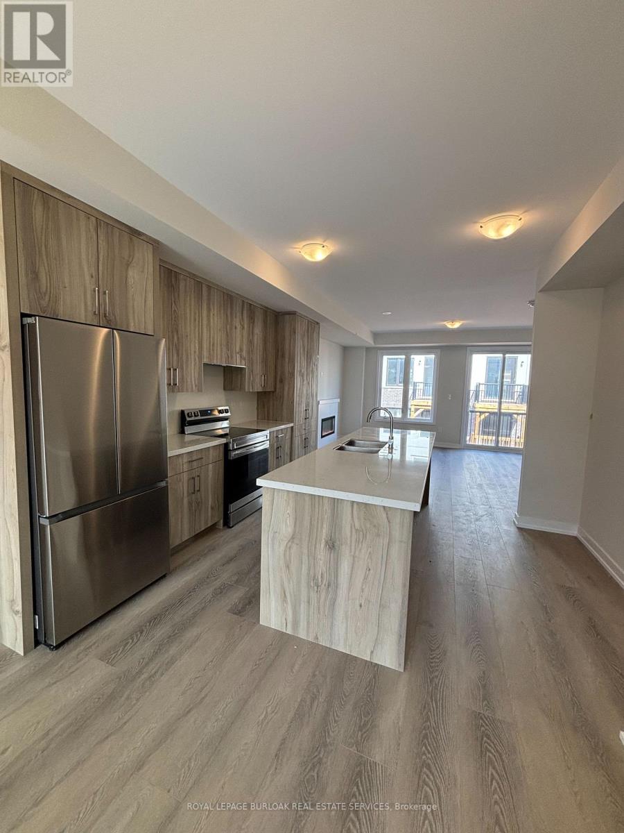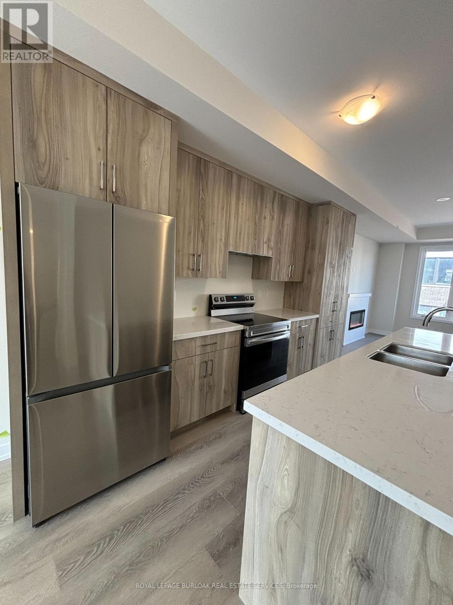 Luxury living meets everyday convenience in this stunning 4-bedroom, 4-bathroom Oakville townhome. Designed for modern families, the home boasts a bright, open layout with hardwood-style finishes and natural light throughout. Gather in the stylish living room with its cozy electric fireplace and walkout to the deck, or cook with ease in the sleek kitchen featuring quartz counters, custom cabinetry, a huge island, and stainless steel appliances. A generous dining space makes hosting a breeze. The main floor also offers direct garage access and a versatile fourth bedroom with ensuite bath and backyard walkout ideal for overnight guests, teens, or a private office. Upstairs, the primary suite includes two walk-in closets and a spa-like ensuite with double vanities. Two additional bedrooms, a main bath, and a laundry room complete the upper level. With an unfinished basement for extra storage and easy access to highways, schools, and every amenity, this home truly has it all. (id:18653)