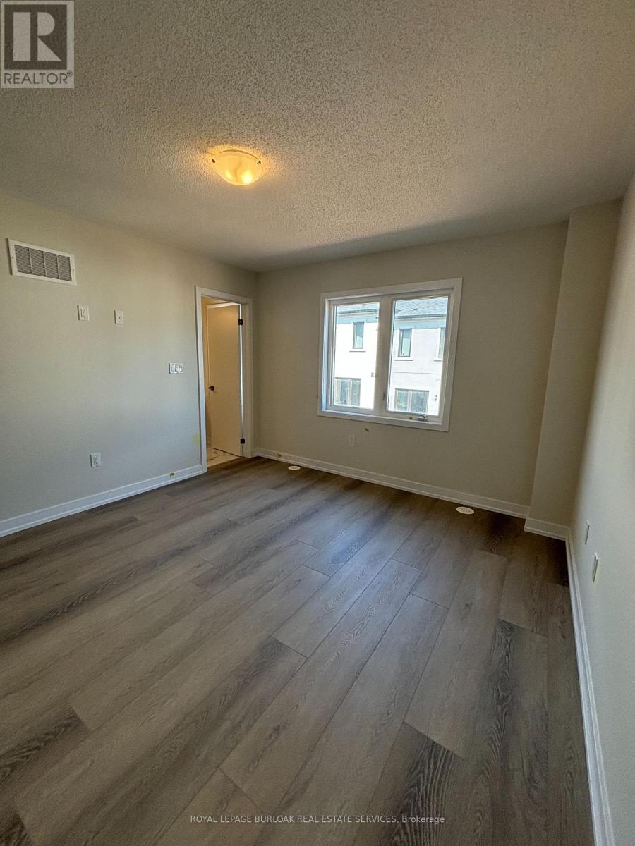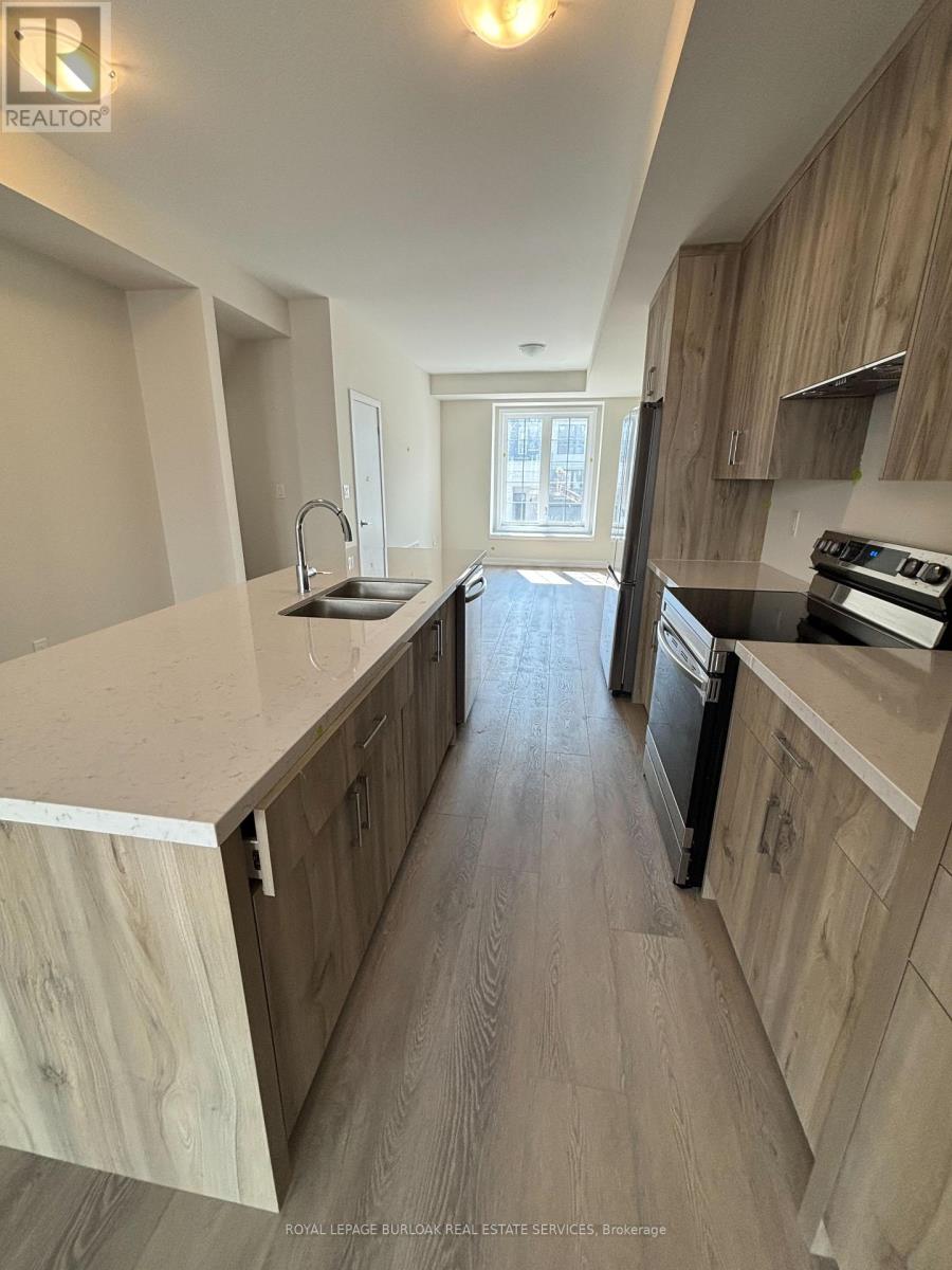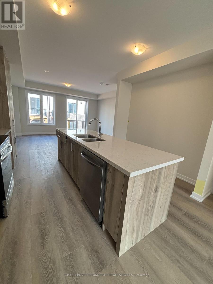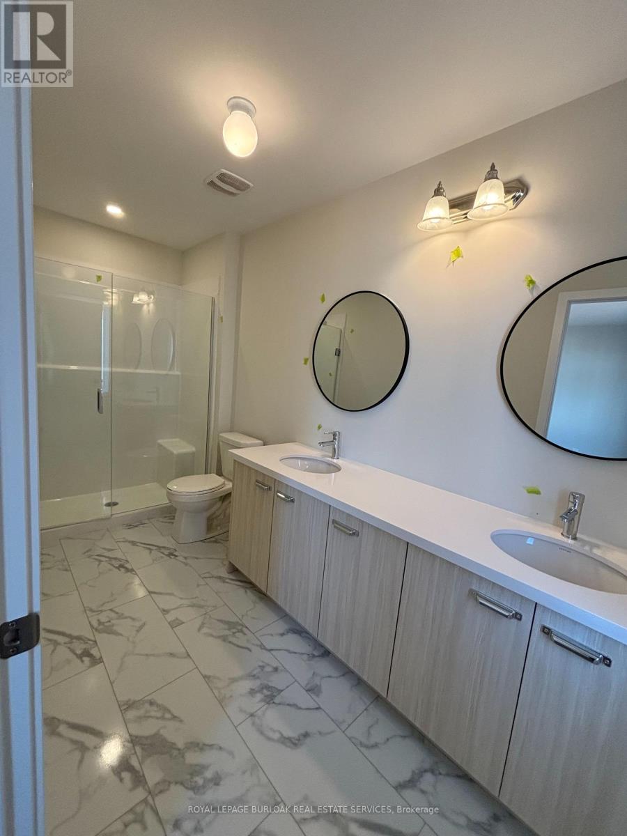 Luxury living meets everyday convenience in this stunning 4-bedroom, 4-bathroom Oakville townhome. Designed for modern families, the home boasts a bright, open layout with hardwood-style finishes and natural light throughout. Gather in the stylish living room with its cozy electric fireplace and walkout to the deck, or cook with ease in the sleek kitchen featuring quartz counters, custom cabinetry, a huge island, and stainless steel appliances. A generous dining space makes hosting a breeze. The main floor also offers direct garage access and a versatile fourth bedroom with ensuite bath and backyard walkout ideal for overnight guests, teens, or a private office. Upstairs, the primary suite includes two walk-in closets and a spa-like ensuite with double vanities. Two additional bedrooms, a main bath, and a laundry room complete the upper level. With an unfinished basement for extra storage and easy access to highways, schools, and every amenity, this home truly has it all. (id:18653)