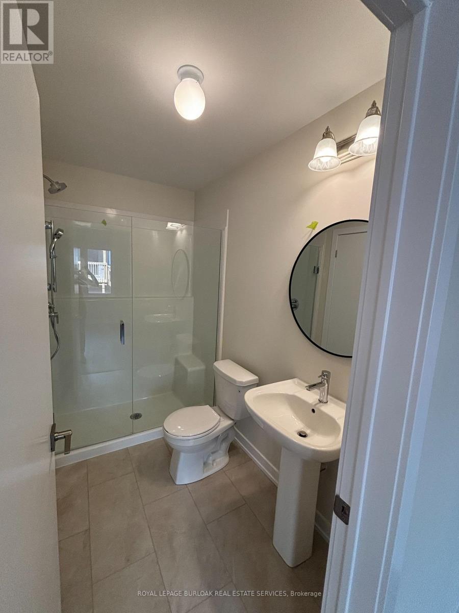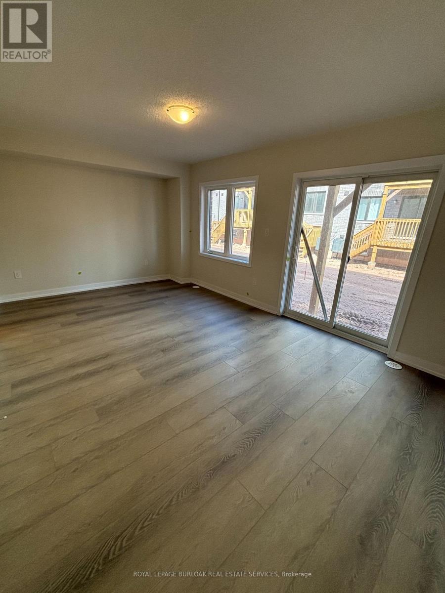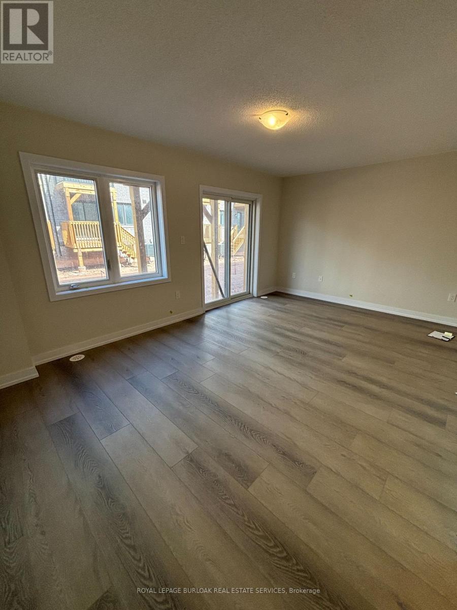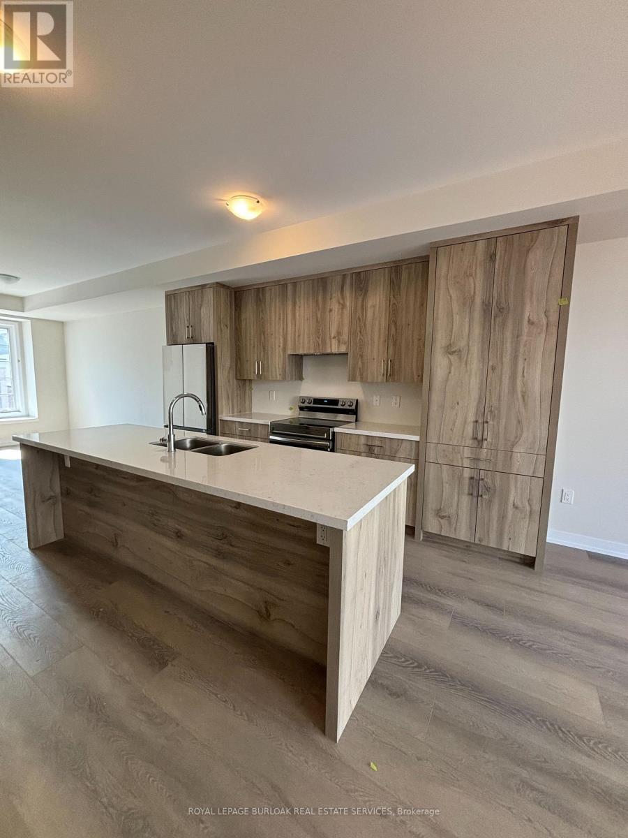 Luxury living meets everyday convenience in this stunning 4-bedroom, 4-bathroom Oakville townhome. Designed for modern families, the home boasts a bright, open layout with hardwood-style finishes and natural light throughout. Gather in the stylish living room with its cozy electric fireplace and walkout to the deck, or cook with ease in the sleek kitchen featuring quartz counters, custom cabinetry, a huge island, and stainless steel appliances. A generous dining space makes hosting a breeze. The main floor also offers direct garage access and a versatile fourth bedroom with ensuite bath and backyard walkout ideal for overnight guests, teens, or a private office. Upstairs, the primary suite includes two walk-in closets and a spa-like ensuite with double vanities. Two additional bedrooms, a main bath, and a laundry room complete the upper level. With an unfinished basement for extra storage and easy access to highways, schools, and every amenity, this home truly has it all. (id:18653)