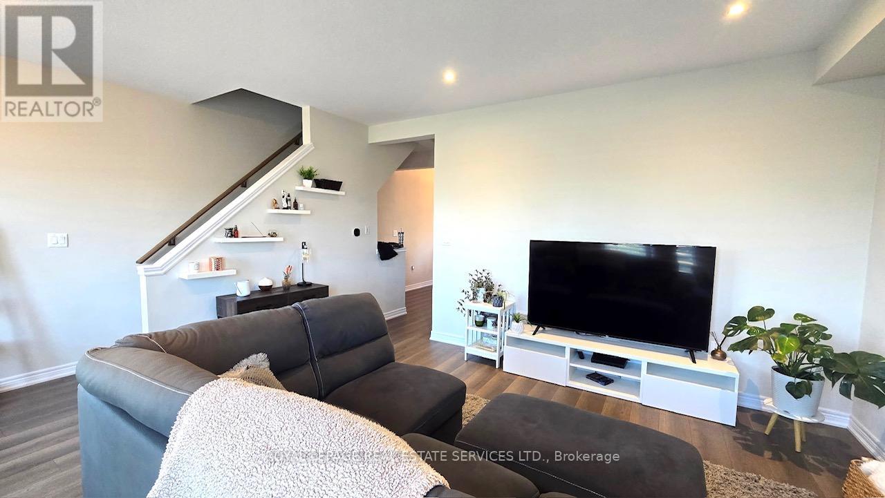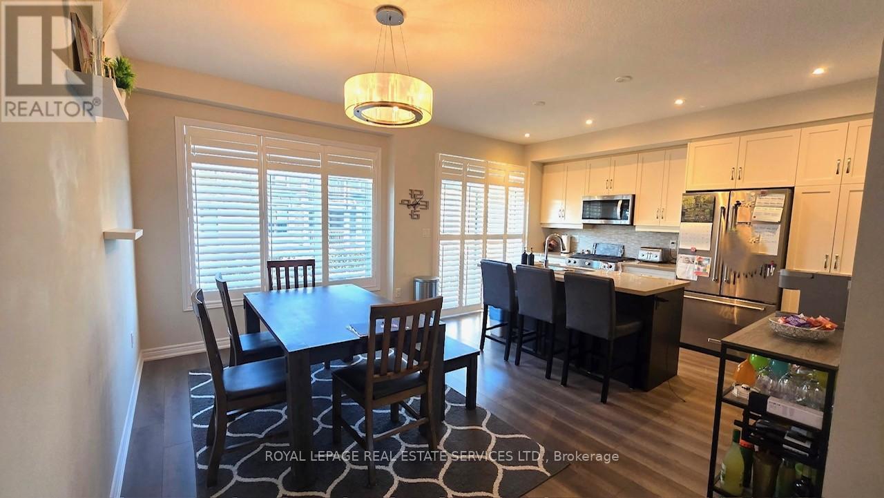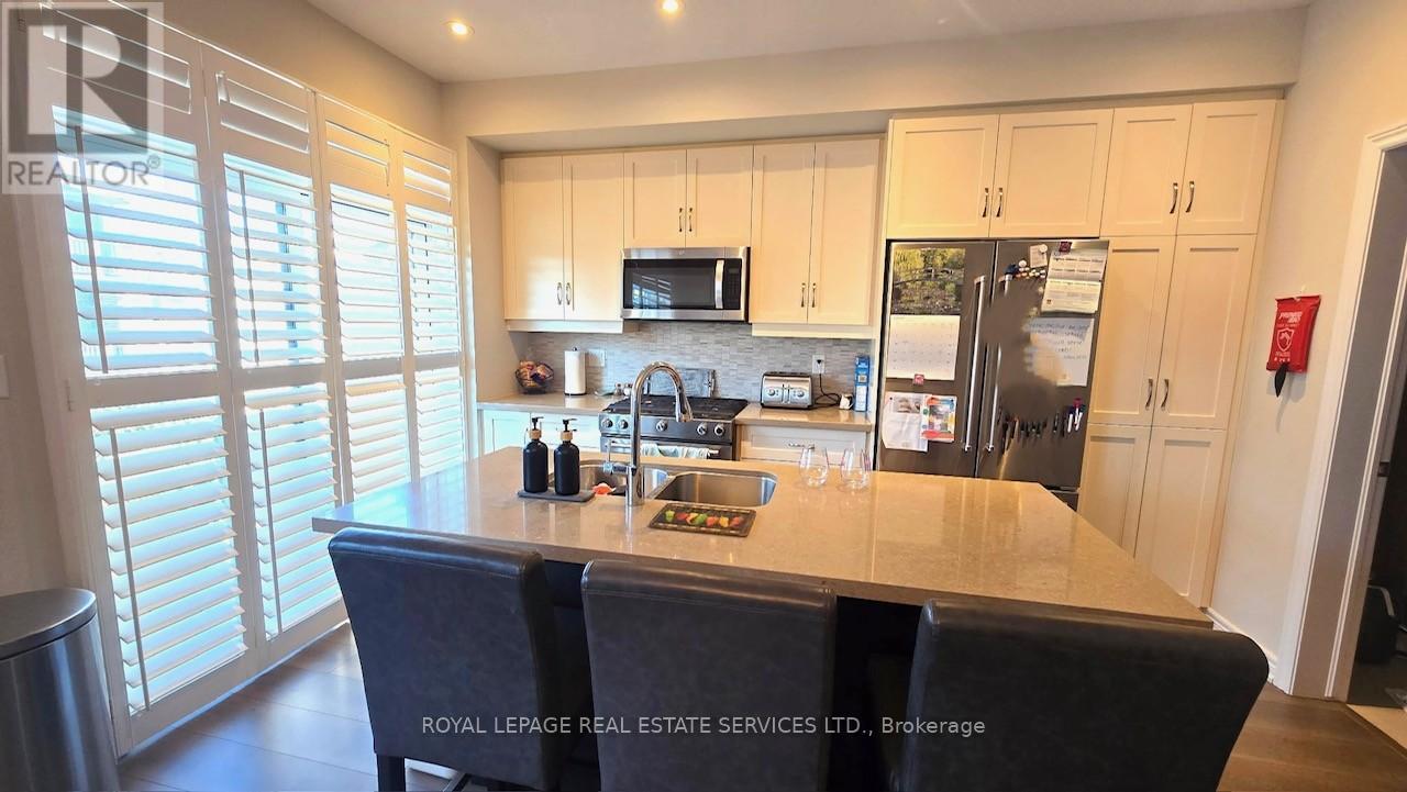 Only 5 years new, this spacious 3-storey freehold townhouse offers an excellent layout with 10′ ceilings, wood flooring, and elegant modern décor throughout. 4 bedrooms, 4 bathrooms, and an unfinished basement ideal for storage or future customization. Bright open-concep tkitchen/dining area with walkout to a south-facing balcony-perfect for family gatherings and entertaining. Large sized living room with two good sized windows and over look the greenbelt open field. Stunning modern kitchen with island, granite countertops, and top-of-the-line stainless steel appliances. Double-car garage plus driveway space for 2 more vehicles-4 parking spots total. Main floor private guest suite with ensuite, and convenient 2nd-floor laundry. Enjoy an unobstructed greenbelt view at the front entrance, adding privacy and curb appeal. All in a family-friendly neighborhood with quick access to highways, public transit, schools, shopping, and more. A move-in ready home that blends comfort, convenience, and style. (id:18653)