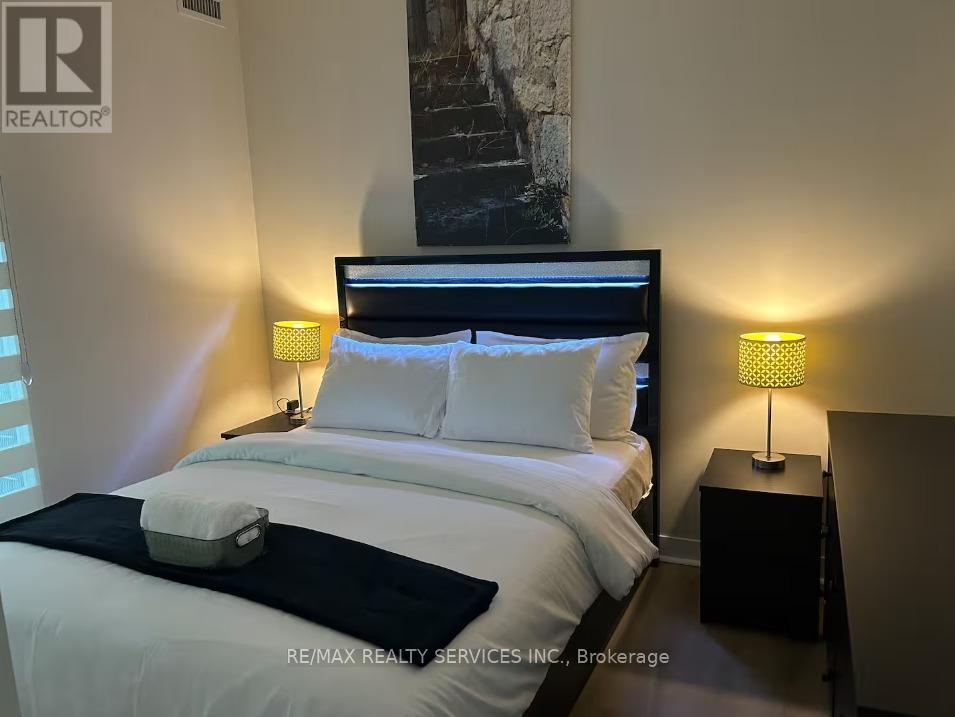 Welcome to this Fully Furnished bright and open-concept featuring 1 bedroom, 1 bathroom condo situated in the popular California Condos minutes to Lake Ontario. This Unit features 9ft ceilings and floor to ceiling windows allowing for plenty of sunshine throughout the living space. The very large (95 sq ft) balcony allows space for entertaining and beautiful views of the Toronto / GTA Skyline. Dark Laminate Flooring Throughout, Great open Concept Kitchen, California Condos offers 24 hours concierge service, outdoor pool, sauna, sky lounge, sky gym, theatre, garden, rooftop lounge, squash courts, aerobics and yoga studio. (id:18653)
