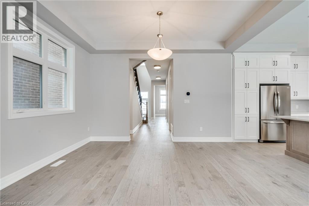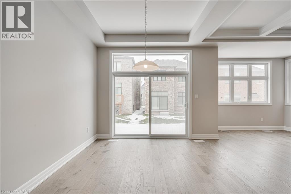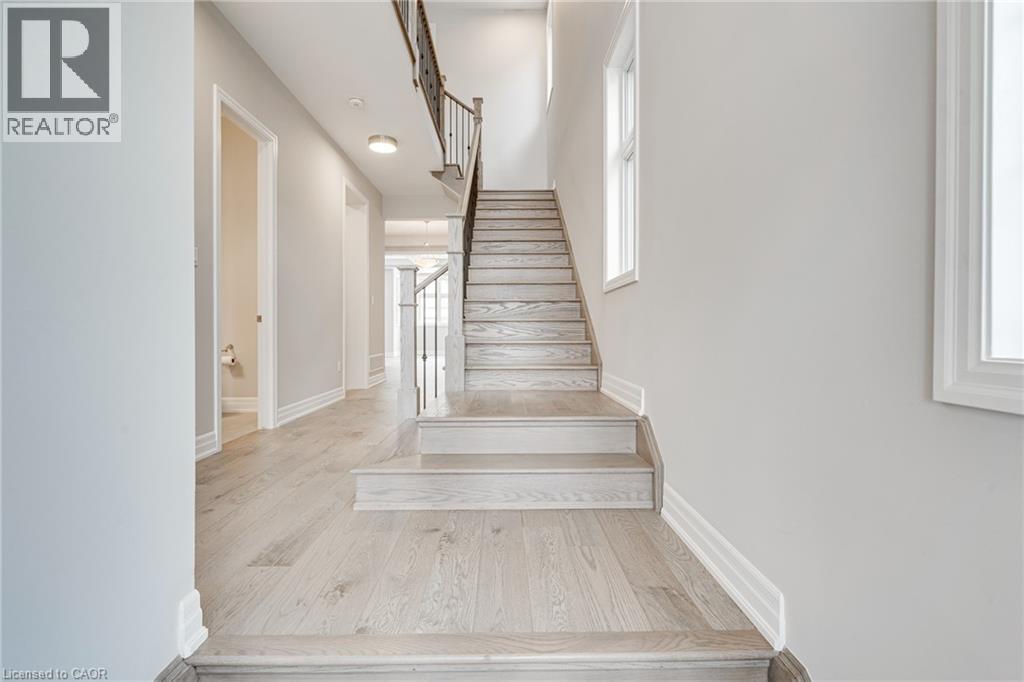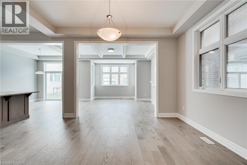 Stunning, newer Mattamy home in North Oakville, Joshua Meadows area. Nestled in a desirable neighbourhood with excellent access to both Hwy 403 & 407 for easy commuting. This modern 4 bedroom, 2.5 bathroom home offers a spacious layout with 10’ ceilings on the main floor. Featuring an open concept kitchen, a bright living room with a gas fireplace, and a large dining area, ideal for entertaining. Conveniently located main floor office directly off the front entrance. The primary bedroom is a true retreat, complete with a luxurious 5-piece ensuite and a walk-in closet. All additional bedrooms also feature walk-in closets, plus a convenient second floor laundry room. Beautiful upgrades throughout include hardwood flooring, hardwood & iron staircase, quartz countertops, and pot lights. The chef’s kitchen is fitted with high-end built-in stainless steel appliances (fridge, stove, dishwasher), along with a washer and dryer. Available for occupancy November 1, 2025. (id:18653)